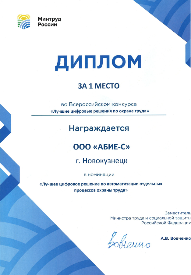 Безопасность данных в нашей системе обеспечивается за счет современных стандартов шифрования. Возможны два варианта развертывания: в облаке или в закрытом контуре предприятия — это гарантирует полный контроль над информацией. Кроме того, ABIE SYSTEM включена в реестр российского ПО, что подтверждает ее соответствие требованиям локализации и цифровизации в сфере охраны труда.
