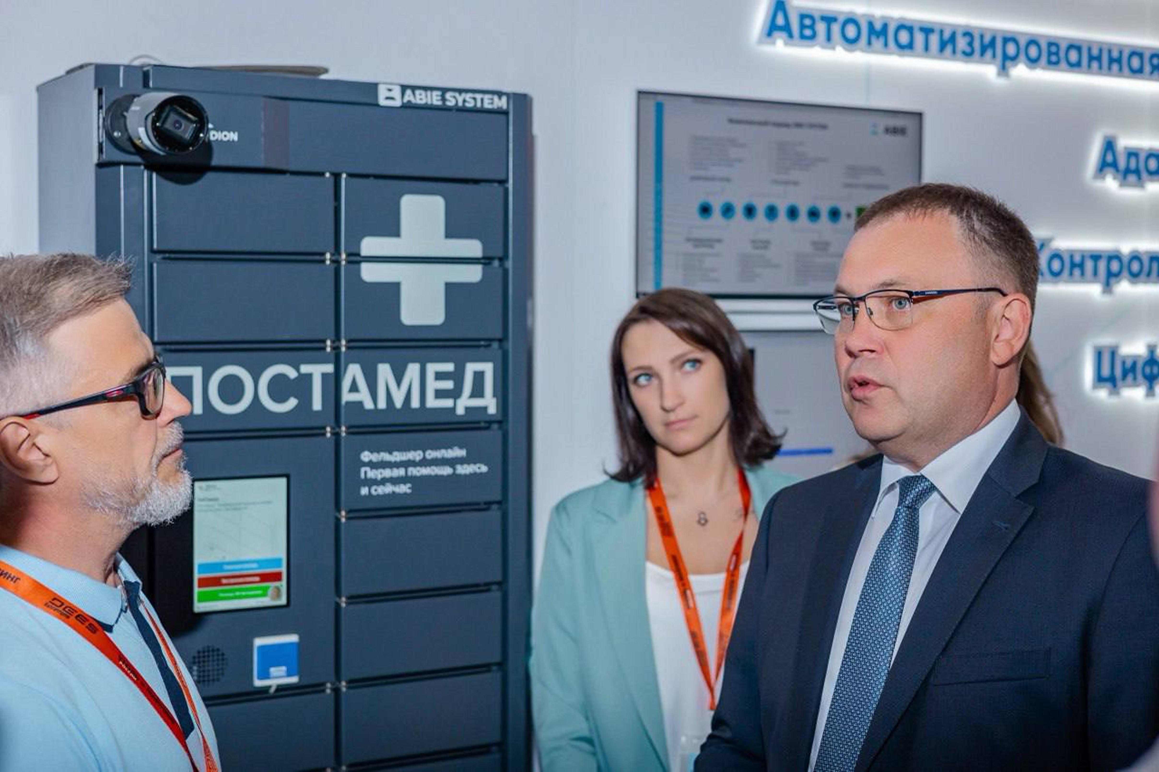 В рамках выставки команда AbieSystem демонстрировала свои разработки на объединенном стенде ГК «Восток-Сервис. Особое внимание было уделено инновационному аппаратному решению – «ПОСТАМЕД». Этот продукт представляет собой аптечный постамат, оснащенный встроенным модулем «телемедицинской консультации», который обеспечивает: