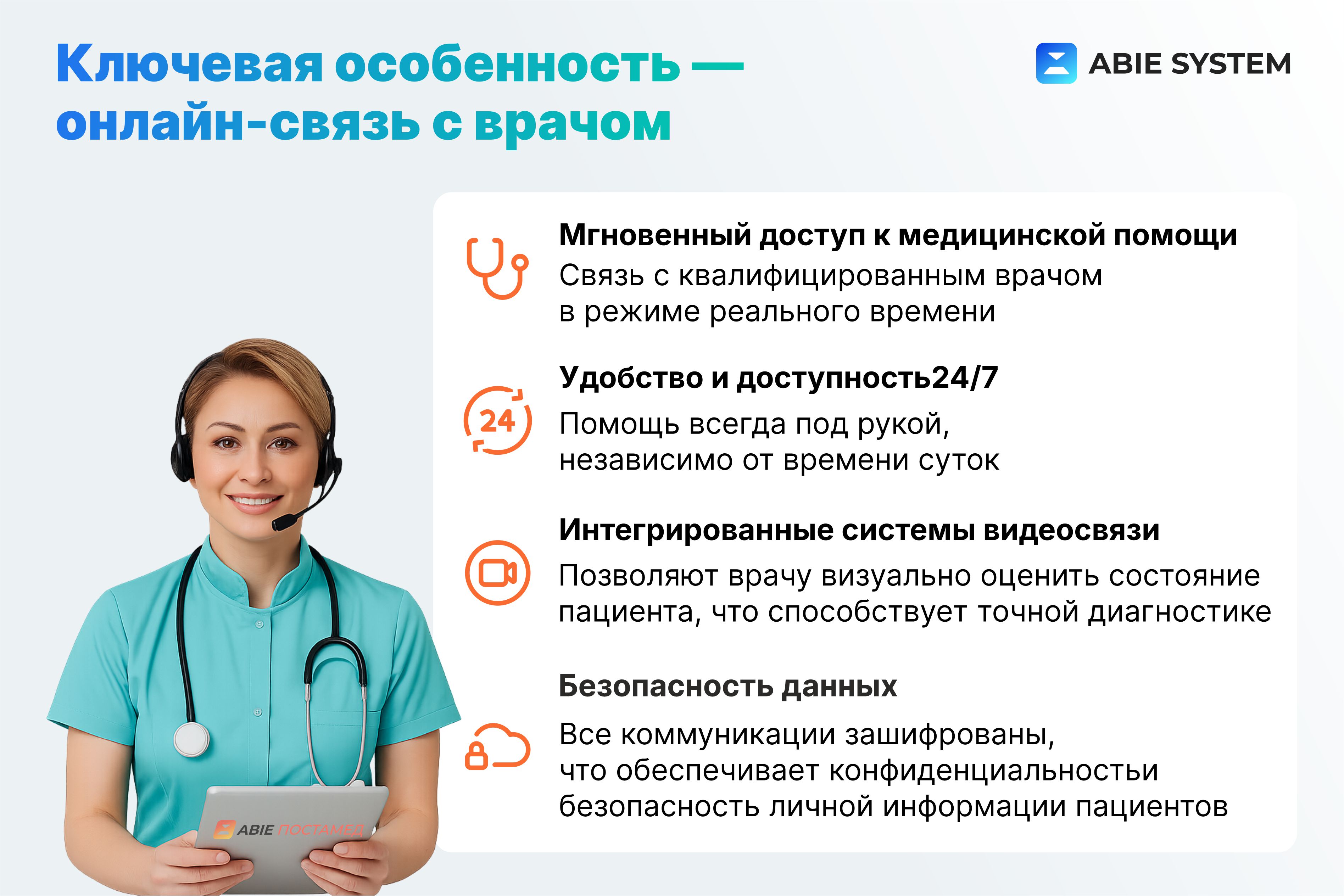 — ПОСТАМЕД сочетает несколько функций: экстренная видеосвязь с врачом, доступ к аптечке с авторизацией, пошаговые инструкции по оказанию помощи, измерение давления и сбор аналитики по инцидентам.